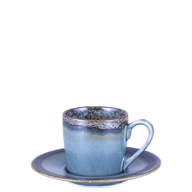 Espresso Cup & Saucer – Blue Glaze with Reactive Rustic Lining